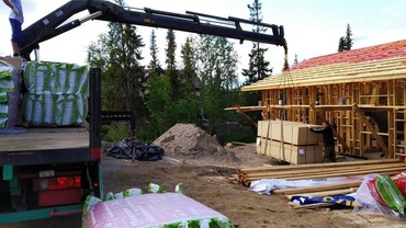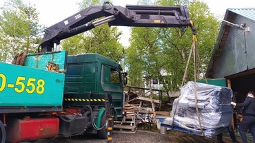 на месте разгрузить мобильную деревянную баню